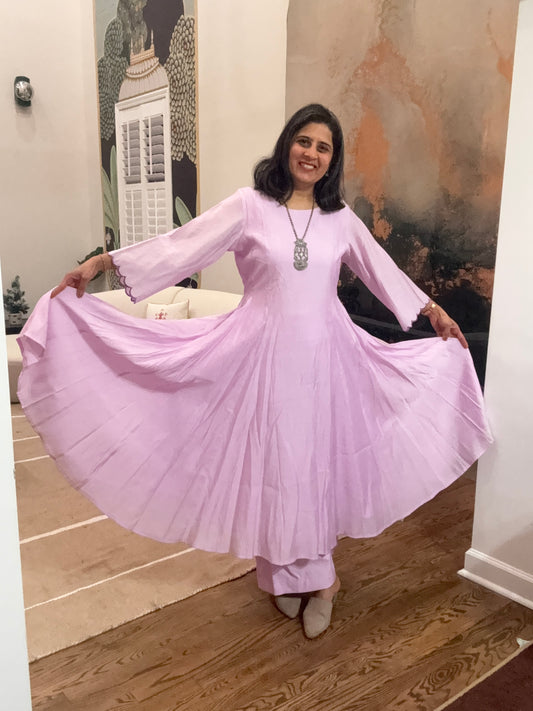 Size L - 40 - Plain Anarkali Kurta and Pant Set - Pastel Mouve