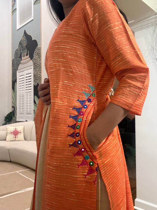 Kutchhi Hand Embroidery Saree on tusser silk