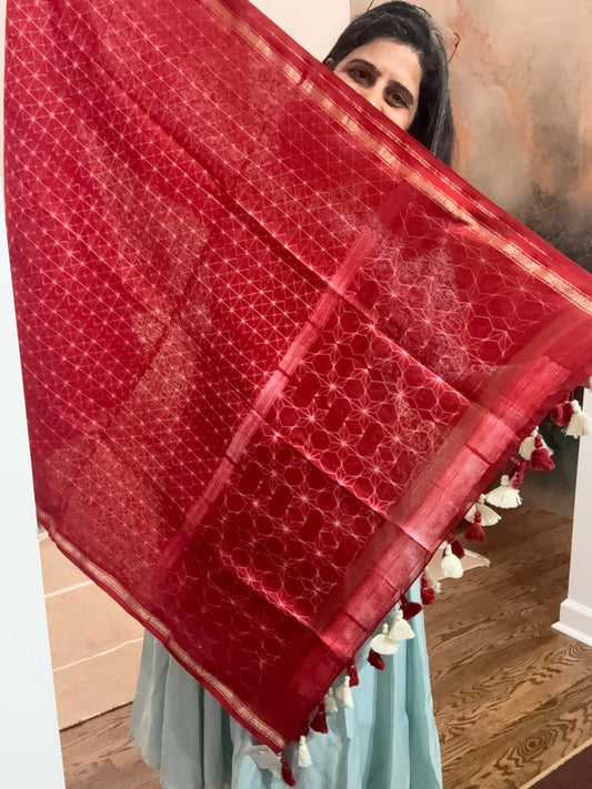 Hand Woven Patola Woolen Shawl - mustard yellow